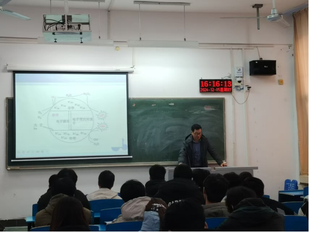 2024年12月5日16点,金沙威尼斯欢乐娱人城金沙威尼斯欢乐娱人城王亚波老师在4104教室开展了一场以《二氧化钛光催化技术简介》为主题的学术报告,金沙威尼斯欢乐娱人城2024级材料1班同学参加了本次学术报告。