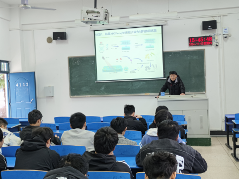 2024年12月5日下午,李湘黔博士在4号教学楼4112教室为材料科学与工程专业学生举办了一场主题为“MOFs复合材料的制备及其应用”的学术报告。在报告中,李博士围绕MOFs的基本概念、MOFs的制备与功能化、MOFs的分类、MOFs的应用做了精彩的报告。并且对自己在MOFs荧光传感和光催化应用方面的主要工作做了详细介绍,并就研究思想的提出、研究思路的设计、研究数据的获得与分析等具体科研过程与学生展开积极交流。最后,李湘黔博士结合自身科研经历就如何提升个人科学研究能力及创新意识与同学们进行了探讨,鼓励同学们积极参加学校各种科研实践活动,努力提高自身综合素质。