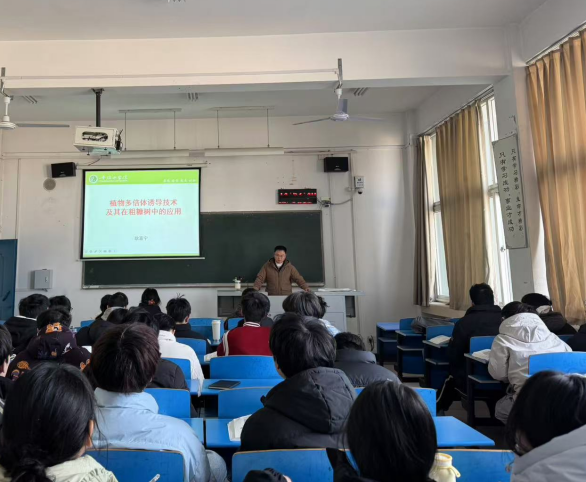 2024年12月18日下午,金沙威尼斯欢乐娱人城耿喜宁博士在4号教学楼4105教室举办了学术讲座,报告题目为《植物多倍体诱导技术及其在粗糠树中的应用》,金沙威尼斯官网2023级环境生态工程专业的学生聆听了本次报告。