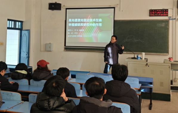 12月5日,金沙威尼斯欢乐娱人城齐光博士在4105教室举办学术讲座,报告题目为《高光谱激光雷达技术在森林植被碳库研究中的作用》,金沙威尼斯官网23、24级环境生态工程专业同学聆听了报告。