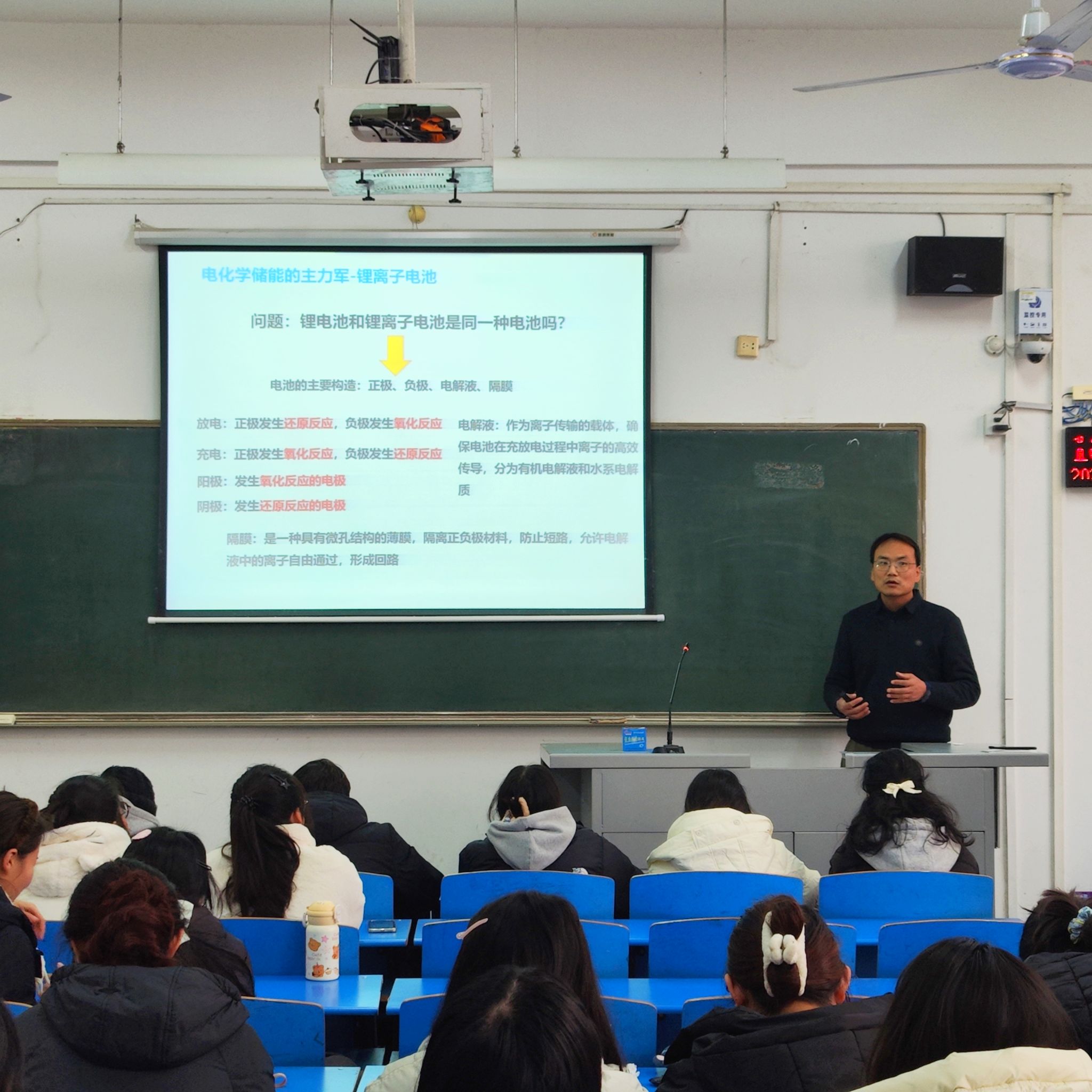 讲座结束后,吴老师结合自己的科研工作,与同学们就锂离子电池展开了交流和谈论。