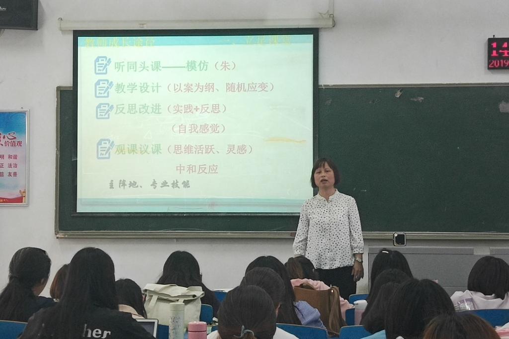 高亚丽结合自身20多年来从教经历,从“立足课堂、做班主任、各级赛课、与时俱进、读书学习、参加培训、论文写作、课题研究”等八个方面分享了自己对教师职业的感悟,并鼓励同学们在今后的学习和工作中脚踏实地,刻苦钻研,突破自我。高亚丽还就提升课堂教育教学基本技能对同学们进行了指导。她以生动的案例为同学们分析了完成一节教学设计的整个过程,指出作为一线化学教师,在教学过程中不仅仅是教给学生知识,更重要的是应该在化学教学过程中帮助学生认识化学学科的本质,在化学学科观念的建构过程中,实施对学生“核心素养”的培养。