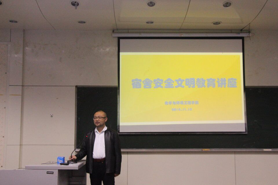 11月18日晚,金沙威尼斯官网在4号楼4206召开了宿舍安全文明讲座,主讲人是学生处副处长杨成虎,17级和18级全体学生参加了此次讲座。