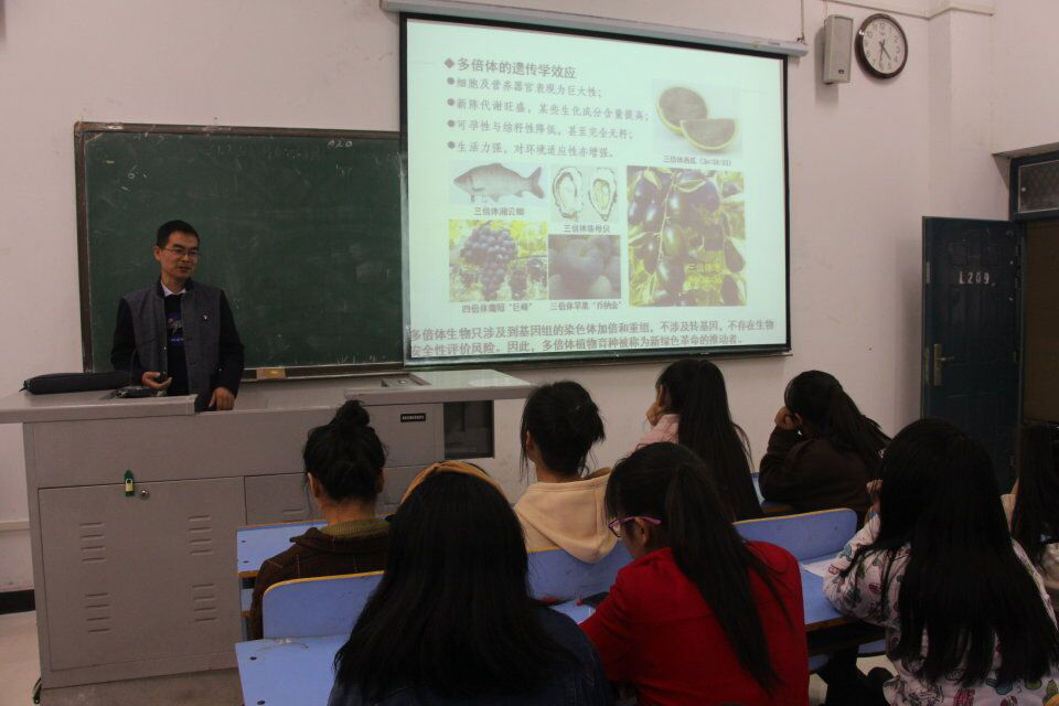 11月15日下午,金沙威尼斯欢乐娱人城在L209教室召开了以“现代生物技术与植物育种”为主题的学术报告。程世平博士为此次学术报告主讲人,18级生态1班和化学1班全体学生听取了此次报告。