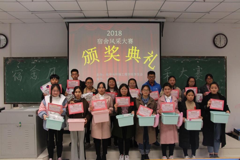 大赛开始前,主持人宣读了本次大赛的规则。活动中,同学们通过ppt演示和播放视频等方式展现了他们各自的宿舍成员和温馨搞笑的日常宿舍生活,引来观众们的阵阵喝彩。展示的照片中,干净整洁的床铺桌椅、装扮温馨的墙壁贴纸,充分展示了同学们的宿舍风貌和以宿舍为单位的丰富的宿舍文化生活。在活动期间,别样有趣的抽奖环节更是吸引场下同学们积极主动地参与,现场气氛也随之达到高潮。激烈的比赛过后,根据评委打分成绩计算结果,11514、11212宿舍荣获一等奖;11302、11513、17225宿舍荣获二等奖;11304、11301、114006、11408、11414宿舍荣获宿舍荣获三等奖;17316、17319、11403、11407、11507、11527、11627宿舍荣获优秀奖。最后,出席此次活动的评委为获奖同学颁奖并合影留念,为此次宿舍风采大赛画上了圆满的句号。