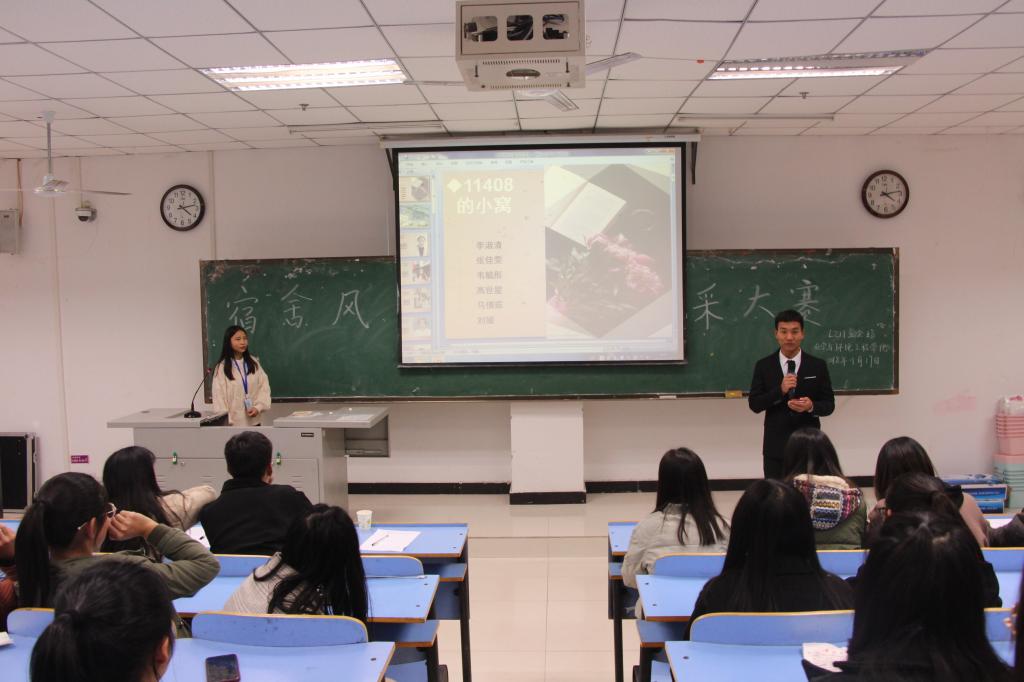 11月17日下午,金沙威尼斯欢乐娱人城分别在L211、L311教室开展了以“化环寓你,相知相宿”为主题的宿舍风采大赛。本次大赛由金沙威尼斯欢乐娱人城学生会宿管部主办。辅导员罗世颖老师、史小倩老师、学生会主席郭含、团总支副书记陈如辉、学生党支部副书记汪梦珠、社团联合会主席胡梦雨以及部分学生干部担任评委,2018级全体新生积极参加。
