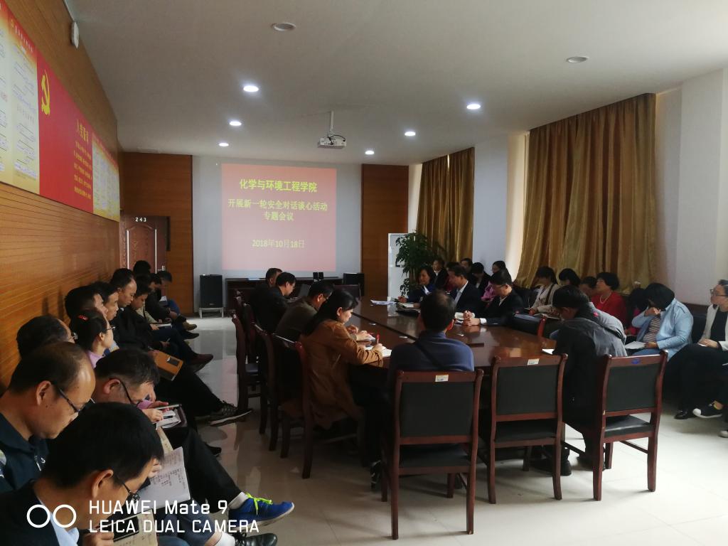 10月18日下午,结合学校开展新一轮安全对话谈心活动方案的要求,金沙威尼斯欢乐娱人城在化学楼243室召开安全工作专题会议,金沙威尼斯欢乐娱人城领导班子及全体教师参加了会议,会议由党总支书记李青彬主持。