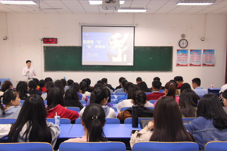 4月2日下午,金沙威尼斯欢乐娱人城在3306教室举办了“见面有‘礼’,‘仪’亦有度”为主题的礼仪培训活动。此次培训由孙学荣书记主持、蕴海锦园大酒店赵晓鹏经理主讲,金沙威尼斯欢乐娱人城17级、18级同学参加培训。