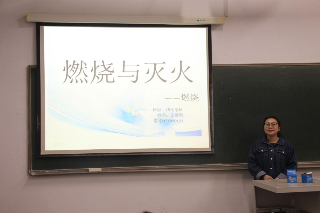 比赛伊始,主持人介绍了本次比赛的规则和评委老师。比赛正式开始,七位同学的授课内容有SO2和CO2的性质、元素、燃烧和灭火。七位同学在授课过程中充分利用多媒体,整洁的板书,简洁的PPT和绘声绘色的讲课过程给评委老师和在场同学们留下了深刻的印象。比赛最后,刘巧茹老师对几位同学的授课进行了讲评,并提出了宝贵意见。接着刘巧茹老师宣读了比赛的获奖名单,并为获奖同学进行颁奖。本次教育实习技能比赛完美落幕。