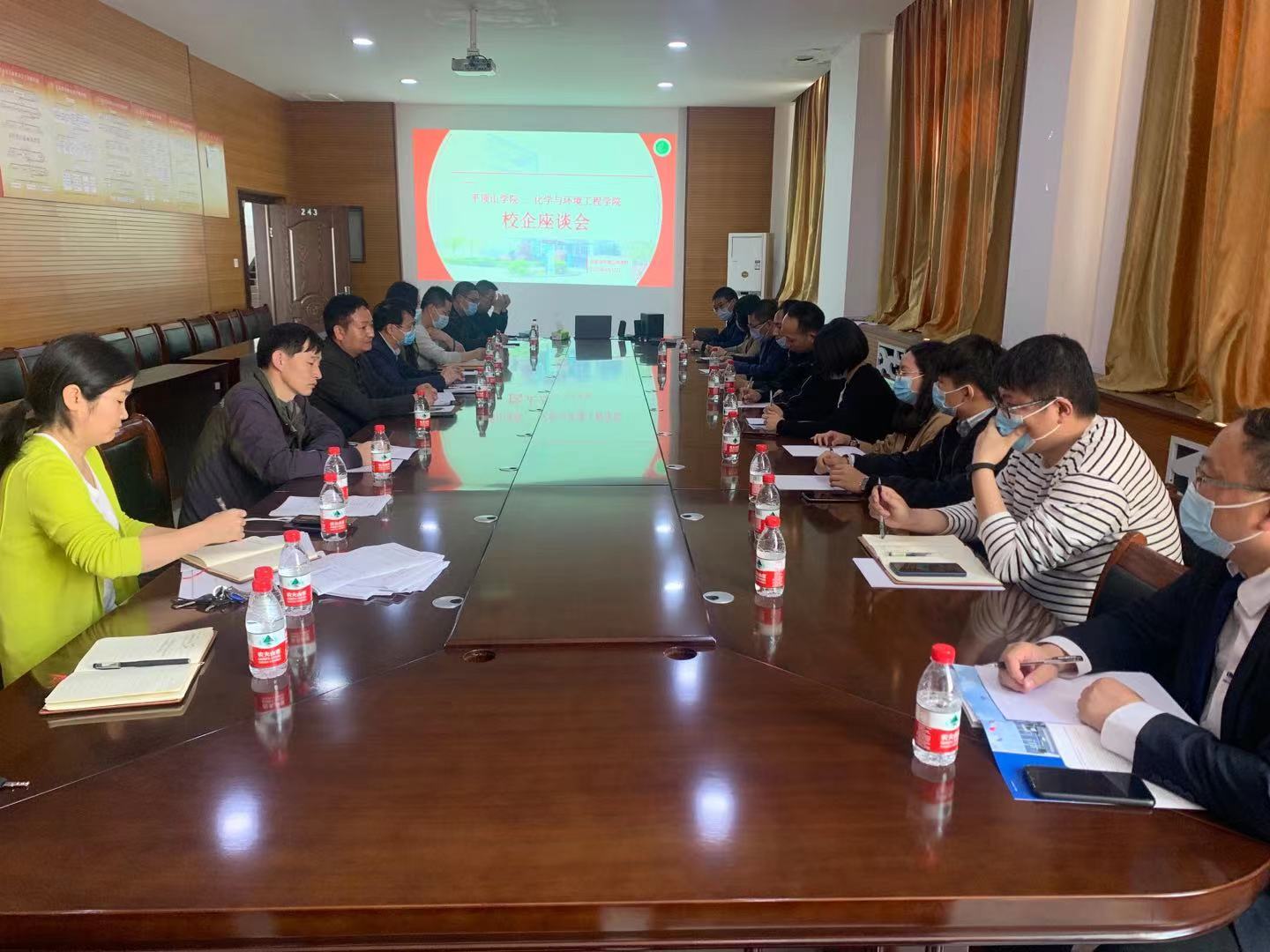 为加强校企合作,深化产教融合,加快高质量的教育体系建设,促进2021届毕业生就业工作稳步推进。4月17日下午,金沙威尼斯官网在化学楼243会议室举行了校企合作座谈会。金沙威尼斯欢乐娱人城党委副书记贺国旭,副院长韩永军,化学工程与工艺教研室主任王莉,材料科学与工程教研室主任曹可生,就业专干石培琳,多家企业代表与毕业生代表参加了本次座谈会。