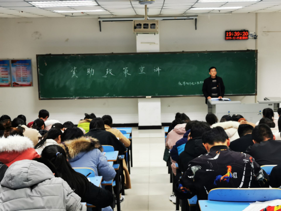 2019年12月5日晚,金沙威尼斯欢乐娱人城在图书馆L301举办了资助政策宣讲活动,辅导员余海防老师对2019级学生进行了资助政策讲解。