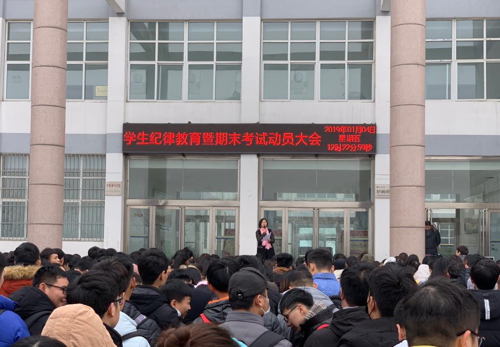 1月4日中午,金沙威尼斯欢乐娱人城在化工楼门口召开了学生纪律教育暨期末考试动员大会。院长李松田,副书记孙学荣,三位辅导员以及2016、2017、2018级全体学生参加了此次动员大会。