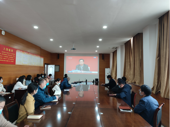 学院全体教职工观看解读党的十九届六中全会精神直播。