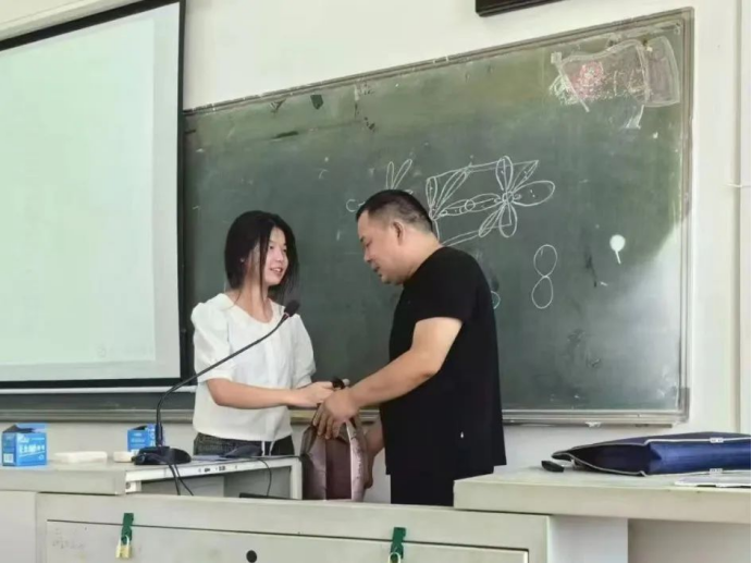 座谈会的温馨氛围还延续到了课堂上。教师节当天,学生们满怀深情,为老师们送上了学院工会精心准备的礼物,每一份礼物都蕴含着对老师深深的敬意与真挚的祝福。望着学生们那一张张纯真无邪的笑脸,聆听着他们发自肺腑的感激之言,老师们的内心被一股股暖流温柔地包裹,幸福感油然而生,仿佛整个教室都洋溢着温馨与甜蜜。