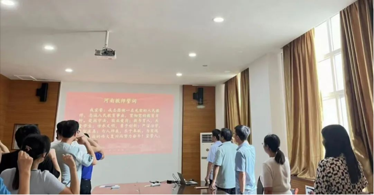 座谈会上,首先,院长韩永军带领全体教师重温河南教师誓词。随后,教师代表们纷纷用真挚的话语讲述着自己的教学历程和内心感悟。他们分享着与学生之间的温馨故事,回忆着教学路上的点点滴滴,每一个字都充满了对教育事业的热爱和对学生的深切关怀。