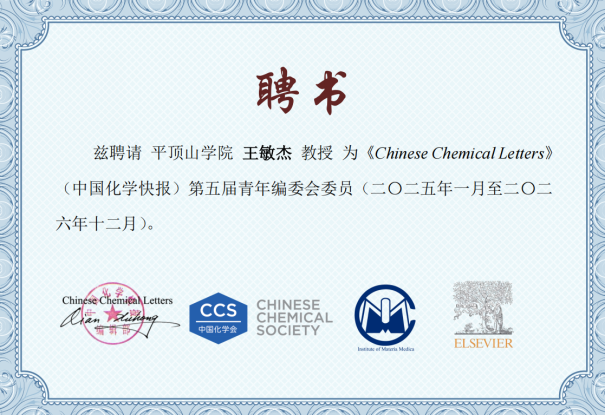 由中国化学快报编委会主办、江西师范大学化学与材料学院及多孔功能材料江西省重点实验室承办的第五届中国化学快报无机化学前言论坛于2024 年 12 月 11 至 13 日在江西省南昌市成功召开。会上来自北京大学、昆士兰大学、复旦大学、上海交通大学、香港理工大学、西安交通大学、金沙威尼斯欢乐娱人城等专家学者受聘担任第五届《中国化学快报》青年编委;参与同行评审,进行稿件初审以及推荐审稿人;推荐高质量研究成果与热点课题等。王敏杰博士此次受聘,凸显了我校学科发展与学术影响力的良好势头。