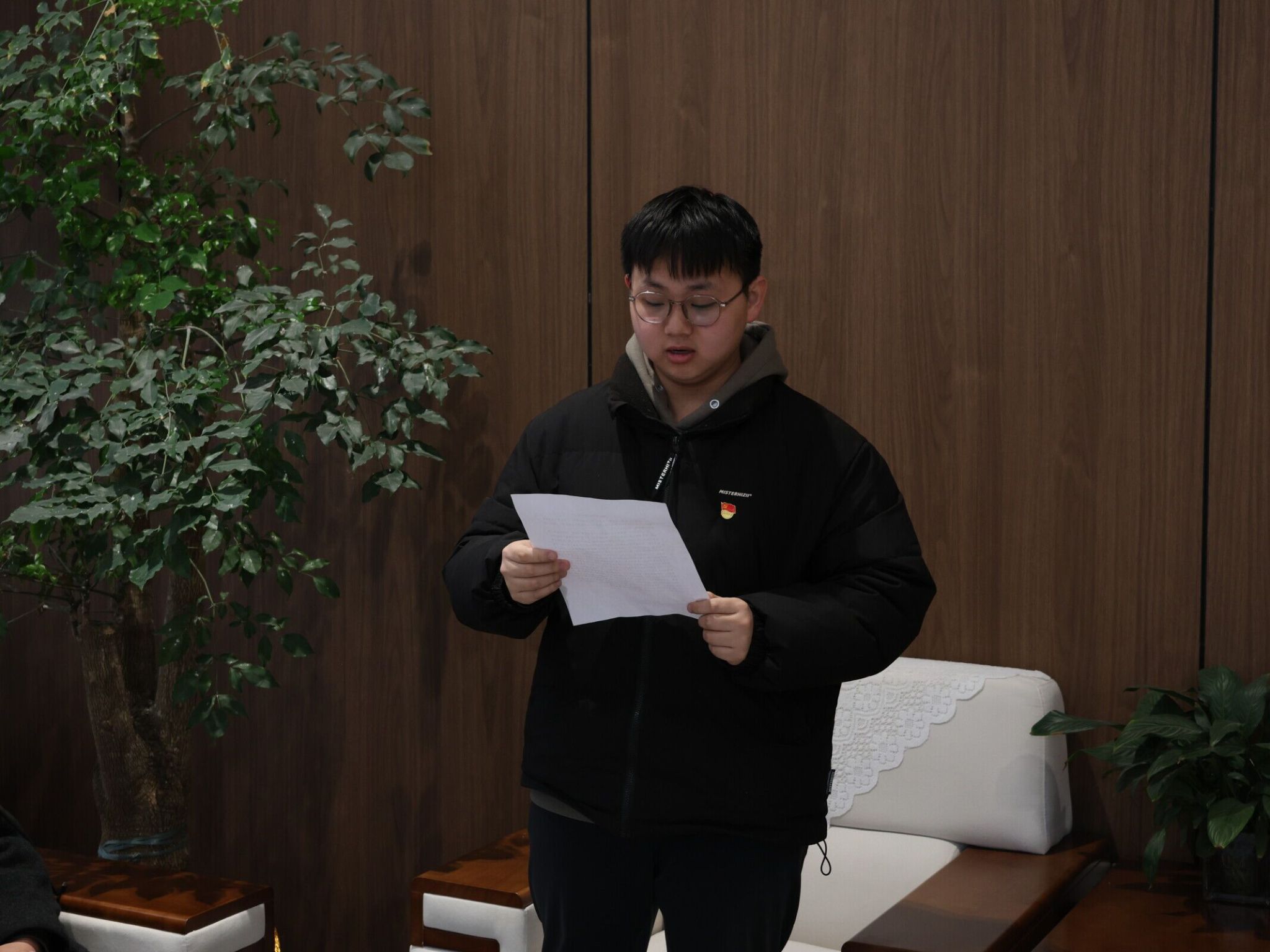 随后,范园悦作为预备党员代表进行发言,她分享了自己的入党历程和成长感悟,决心用实际行动践行党的宗旨。武启涵作为正式党员代表,分享了作为一名党员在工作和学习中的体会和收获。
